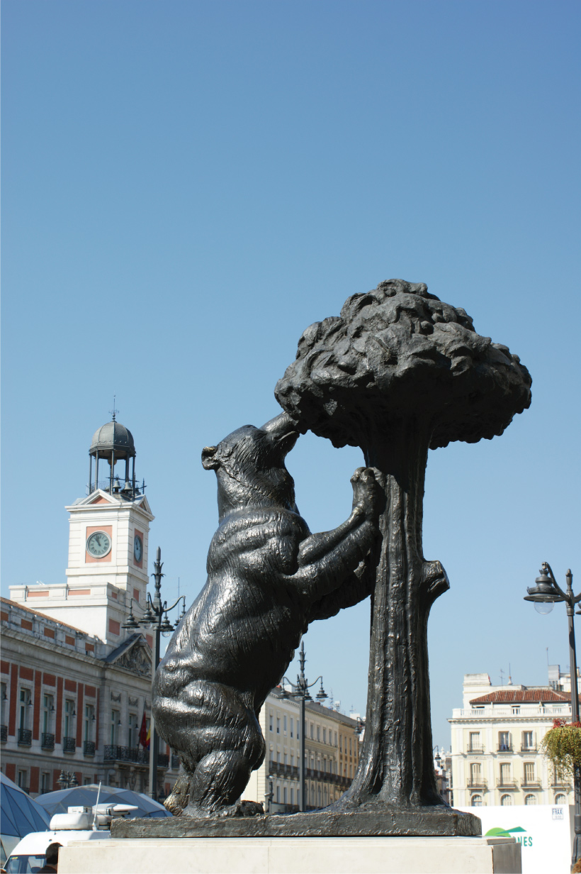 Ensuite nous découvrons (enfin) la ville : la gare aménagée en serre tropicale, la porte du soleil (puerta del Sol), la place Mayor, le marché couvert San Miguel, la place de la ville, le palais royal, la place d'Espagne avec Don quichotte et Sancho Pança ...